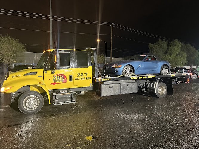 • What is the service area for 365 Towing Las Vegas? 365 Towing Las Vegas serves the Clark County, Nevada area, including the city of Las Vegas and surrounding communities.